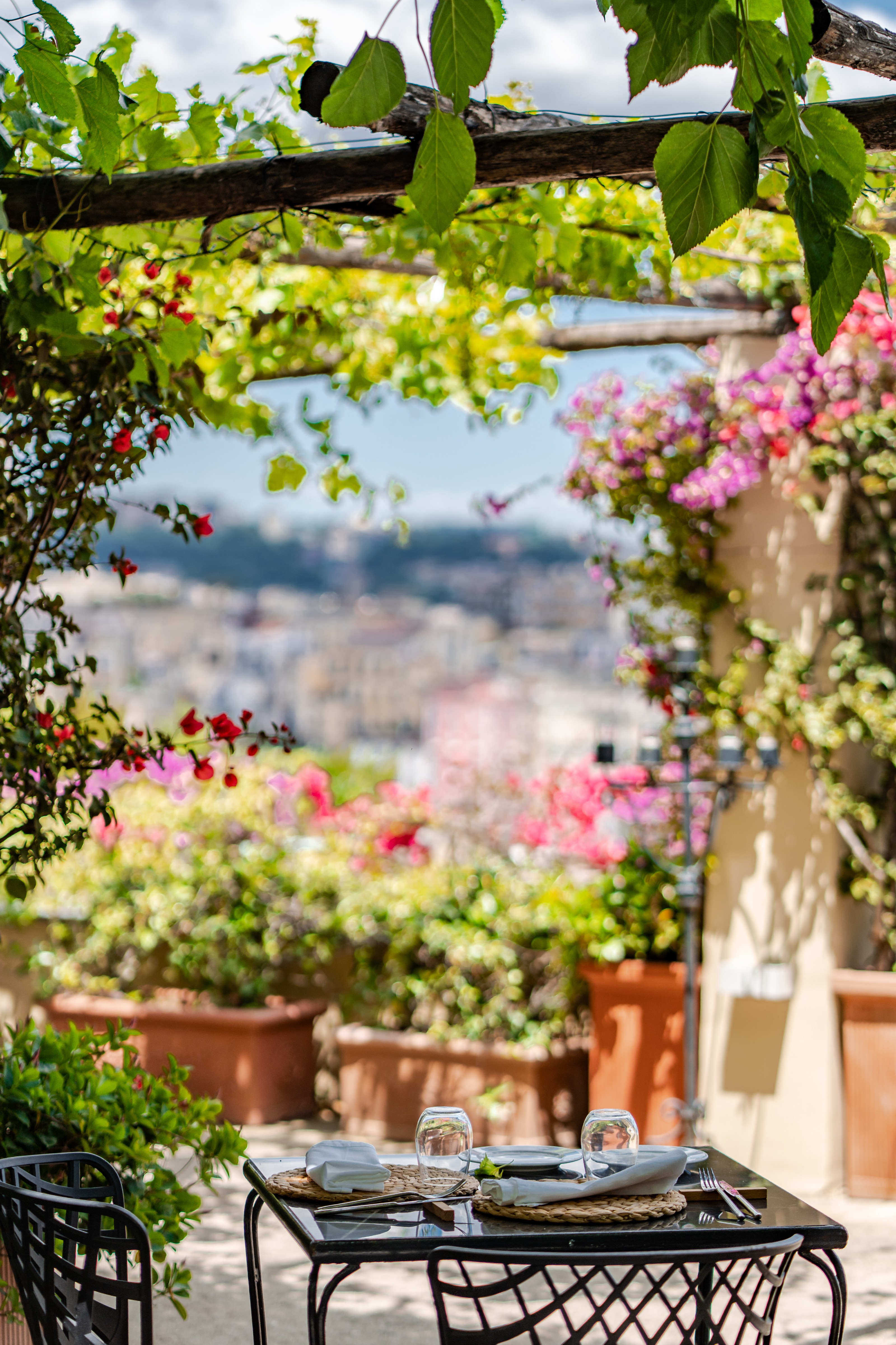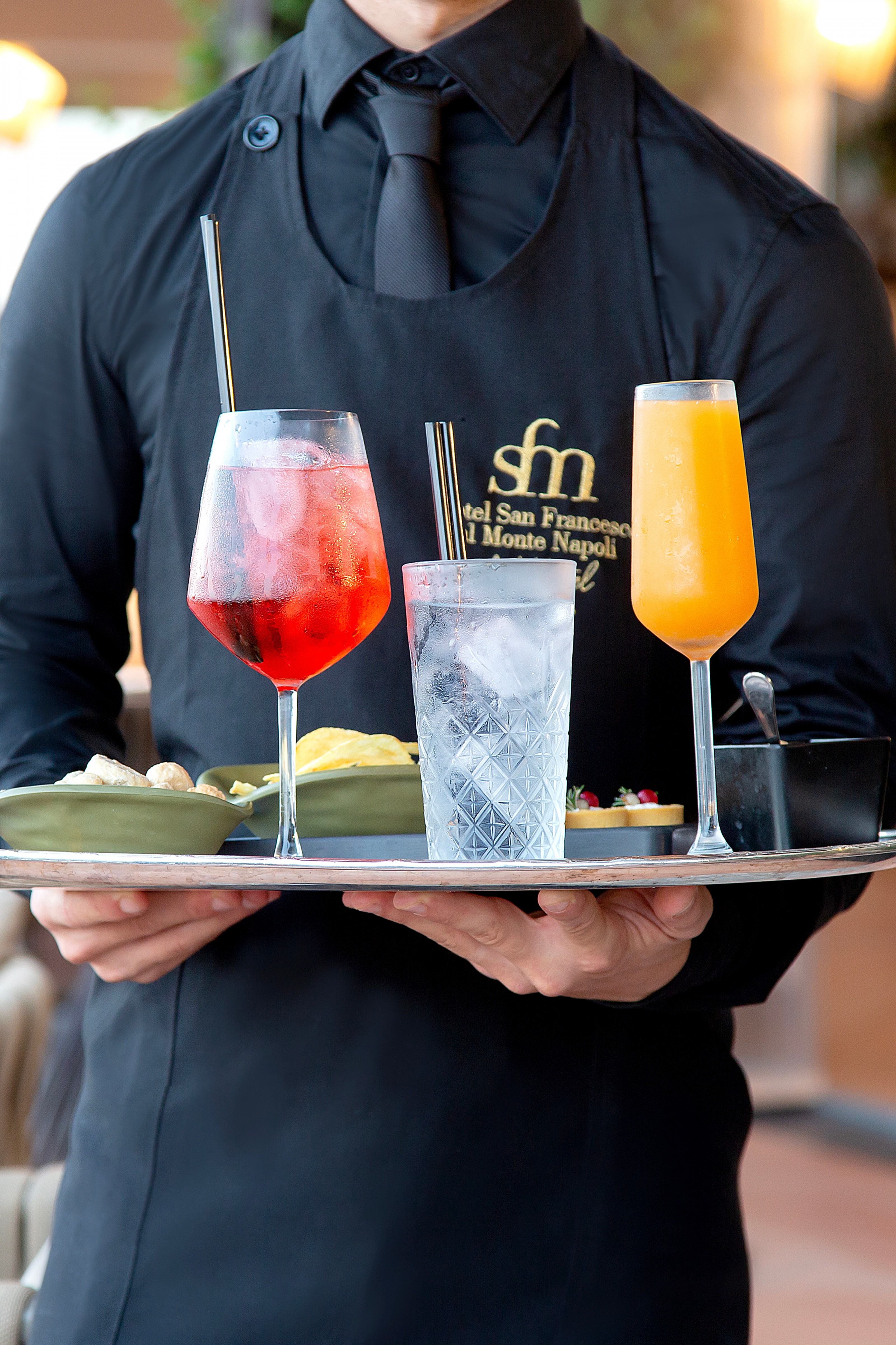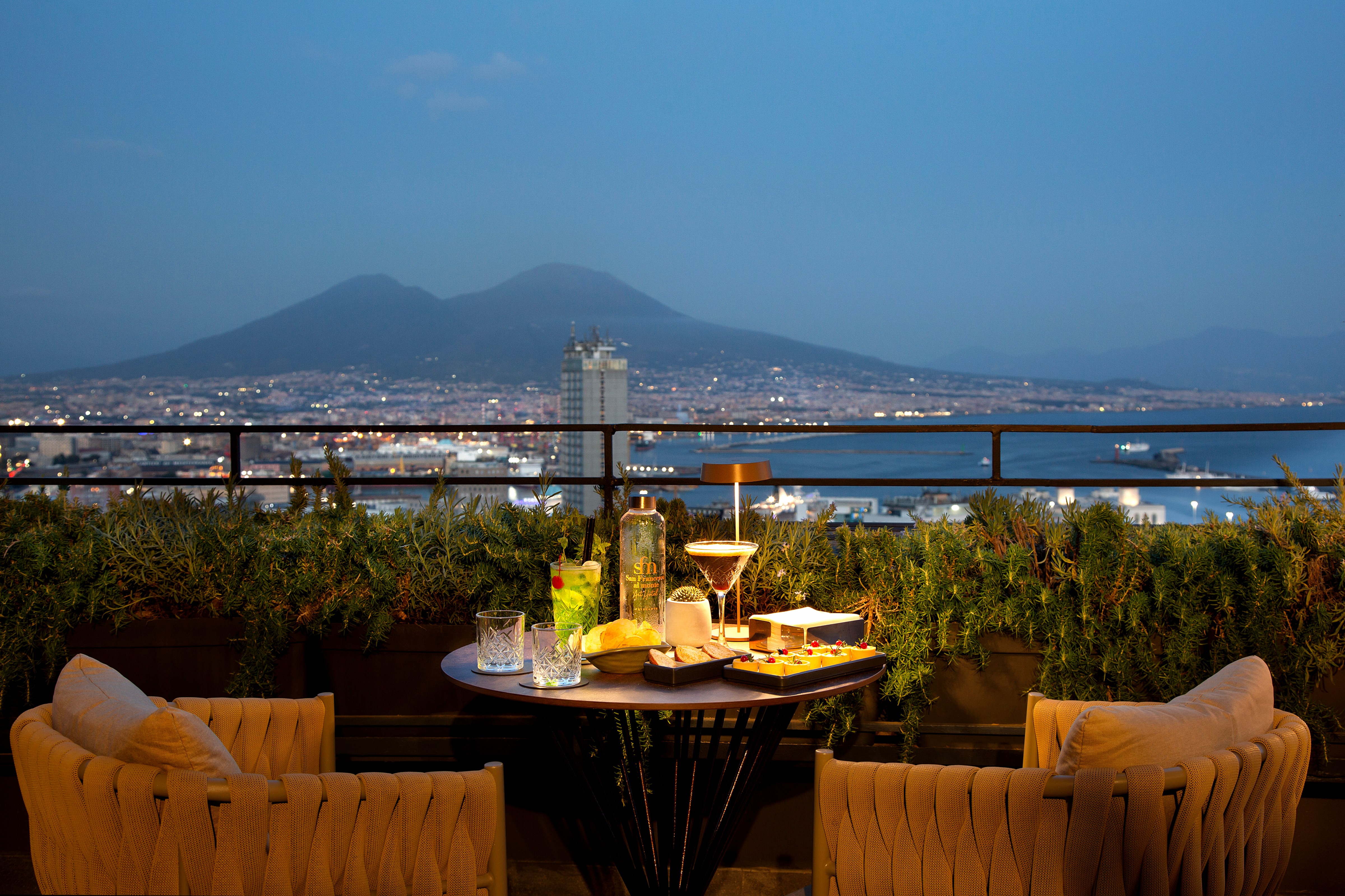 Pianomusik, bekväma soffor och en fantastisk utsikt är de främsta anledningarna till att baren har blivit mötespunken på den napolitanska terrassen och för den internationella eliten som tycker om att njuta av proffsigt tillblandade cocktails och utvalda viner från vår källare.